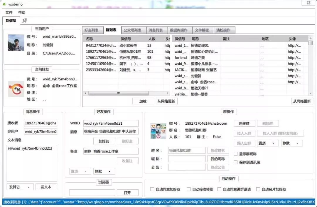 以下是我们的微信群控软件的演示版,企业微信类似: