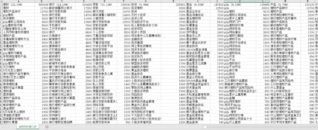 这里是通过很多数据挖掘工具,先把整个行业用户正在搜索什么都列出来,必须要穷尽整个行业,越多越好,然后按照核心词再分成不同的组,这个时候用户的需求就明明白白列在你面前了。
