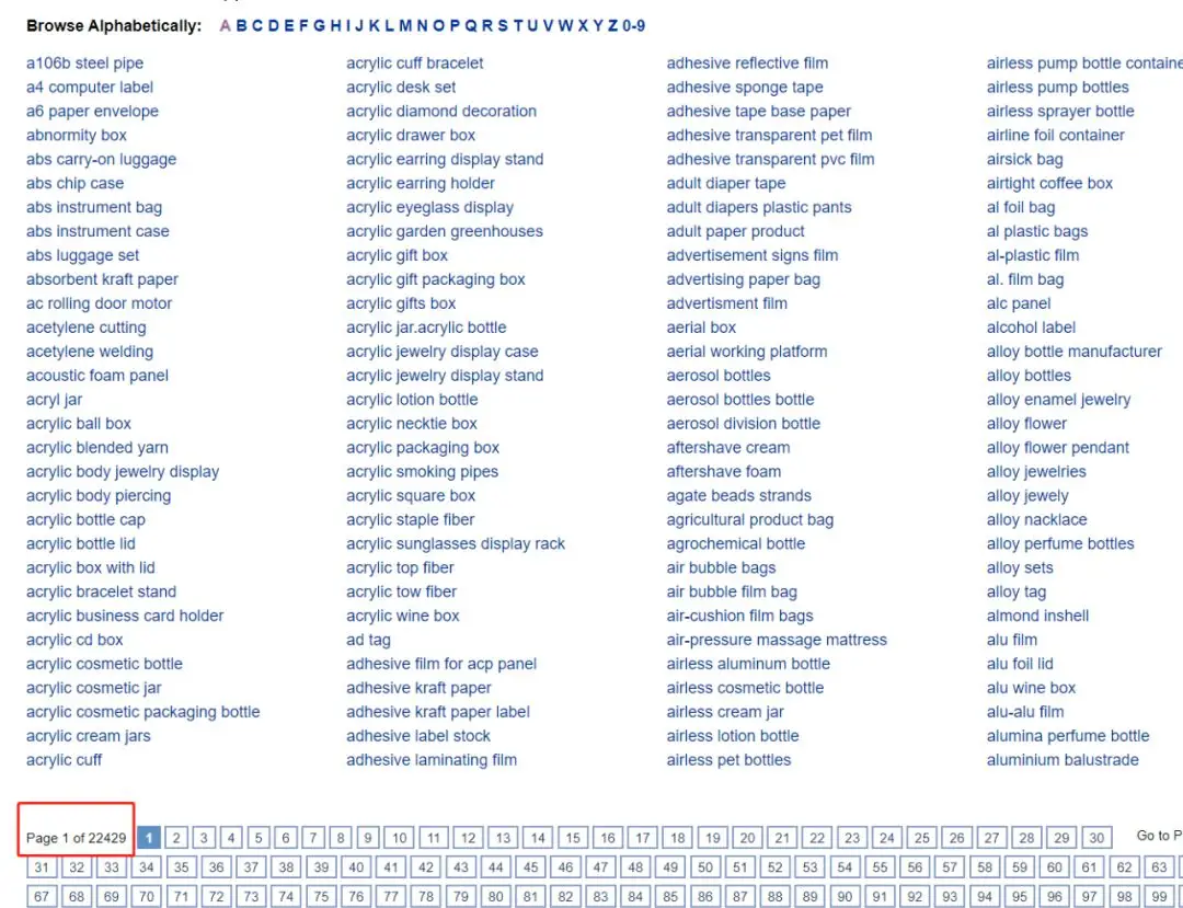 大家点一下A字母,这里都是以A开头的关键词,一页是120个词,A字母下有22429页。A到Z一共是2千多万个词。