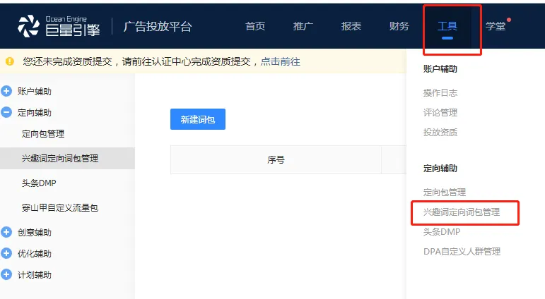 还有就算花钱购买流量的渠道都是能让关键词发挥作用的,比如今日头条的巨量引擎后台是开放了用关键词定位人群的投放的。