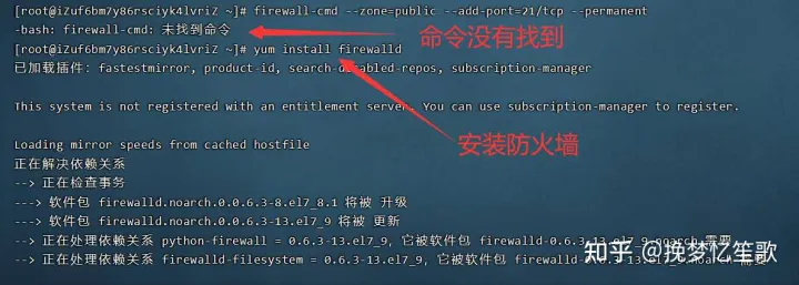 我的是CentOS系统,所以选择命令:yum install firewalld