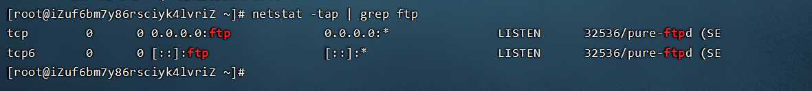 [root@iZuf6bm7y86rsciyk4lvriZ ~]# netstat -tap | grep ftp